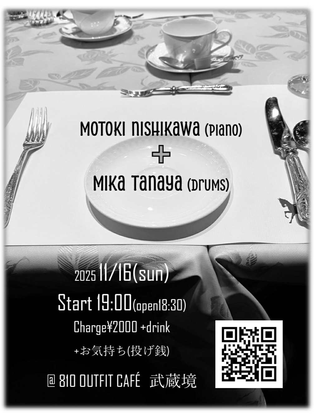 11/16 | 日 | ◯ | 西川素樹 (p)+棚谷美歌(ds) duo | 無 | ◯ | ||