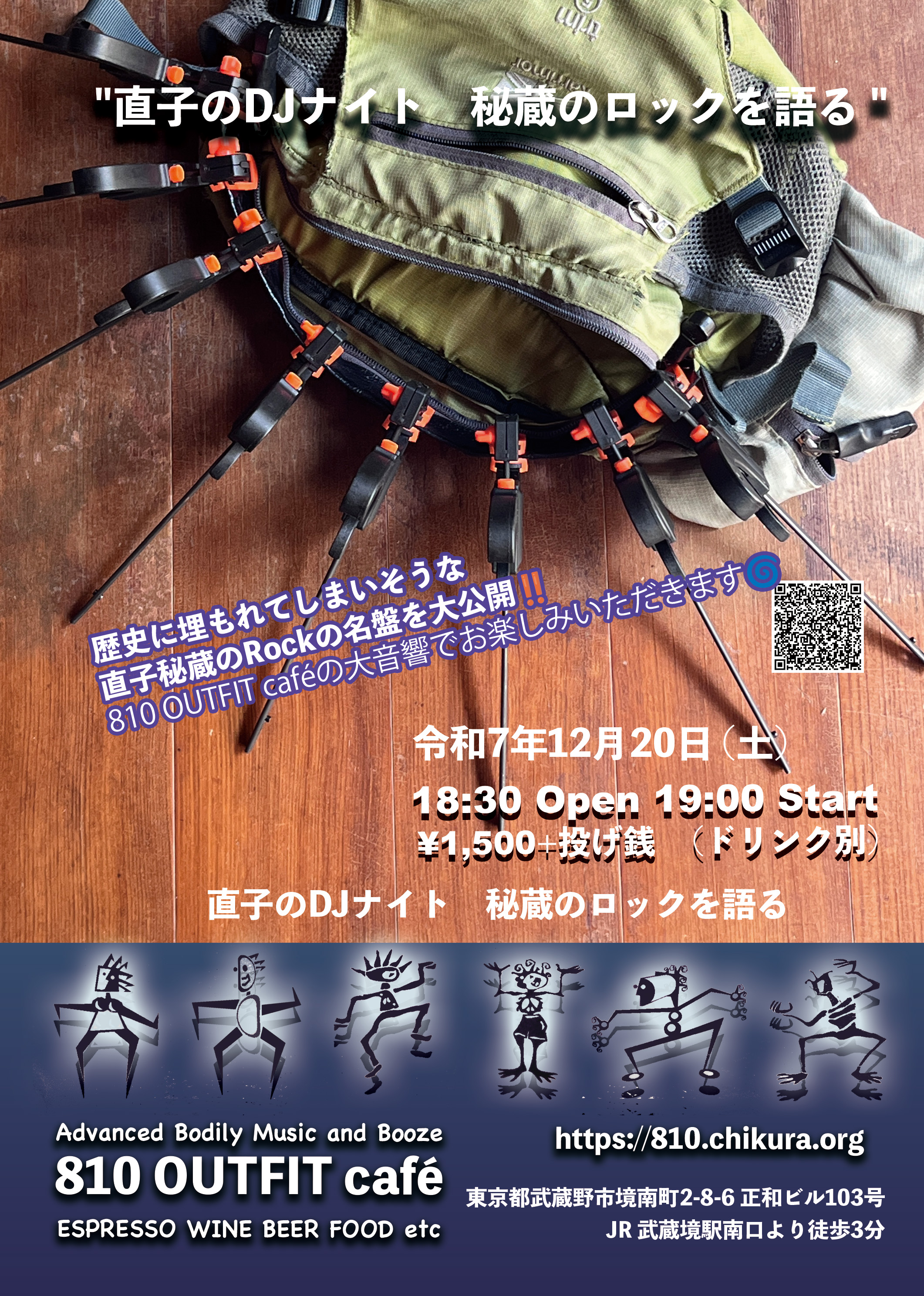| 12/20 | 土 | ◯ | 直子のDJナイト 秘蔵のロックを語る | 無 | ◯ | |||