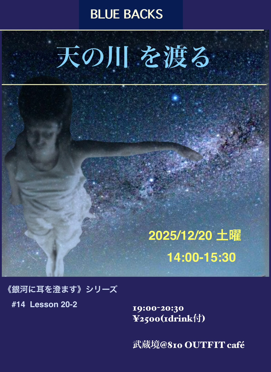 | 12/20 | 土 | ◯ | Marfa Tama 単独稽古open #14 Lesson 20-2 「天の川を渡る」 | |||||